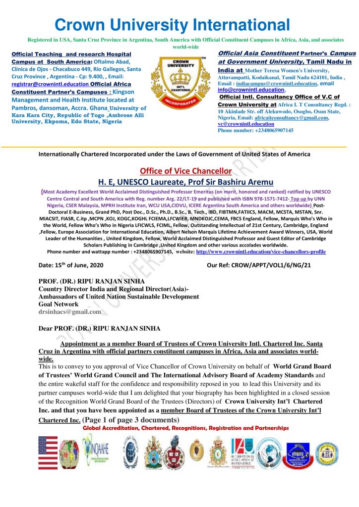 • Professor/PVC/VC/CEO